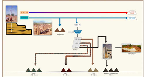 iron ore involves scalping, sizing, screening, Log Washing, and Classifying.